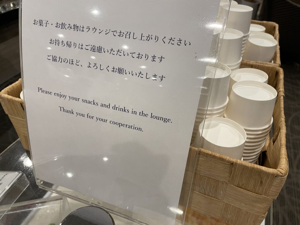 ラウンジの軽食や飲み物は客室に持ち帰れなかった
