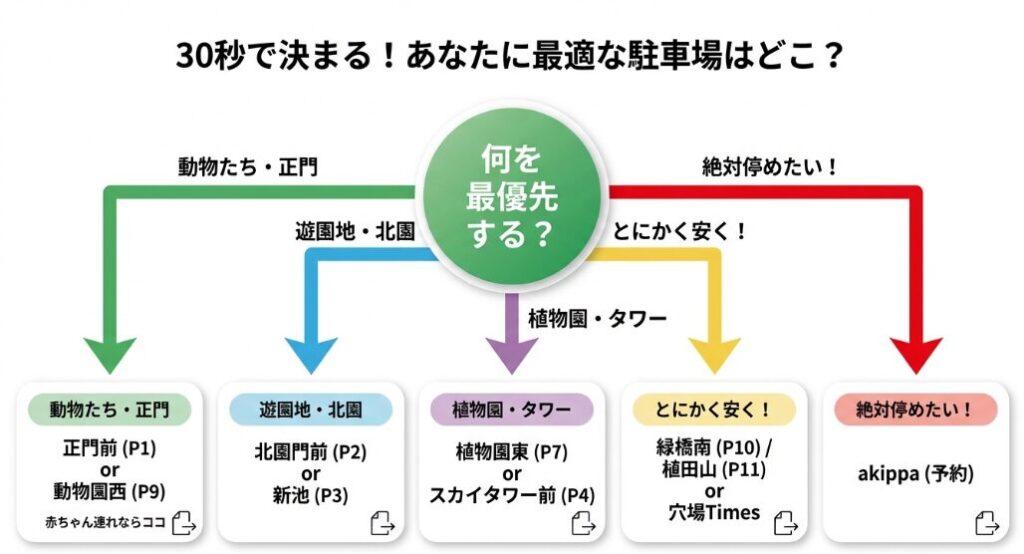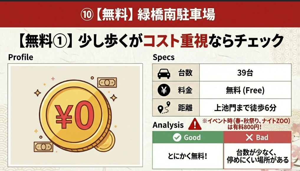 ⚠️ 注意事項 「緑橋南」と「植田山」の無料設定は、春・秋まつり期間の土日祝やナイトズー開催日には有料(800円)となります。