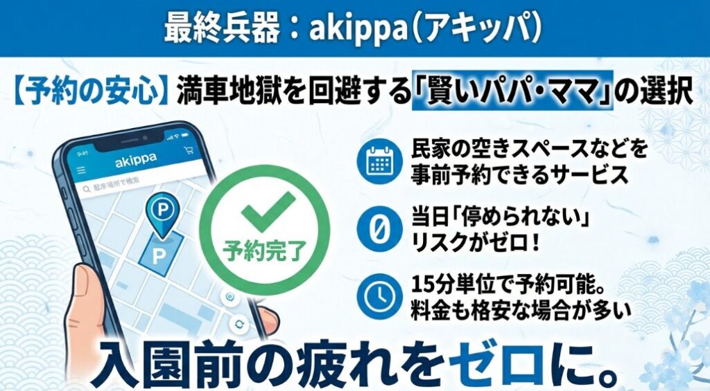 こういう日は、事前予約できる駐車場を「保険」として考えるのも一つの手です。