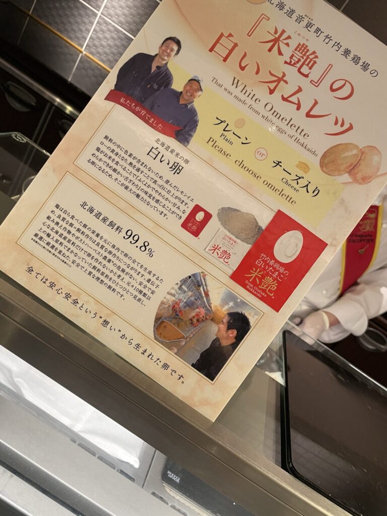 - 名物「白いオムレツ」:北海道産のお米で育った卵「米艶」を使用。