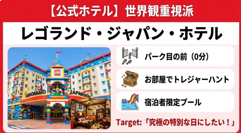 YES →レゴランド・ジャパン・ホテル(公式ホテル一択!)