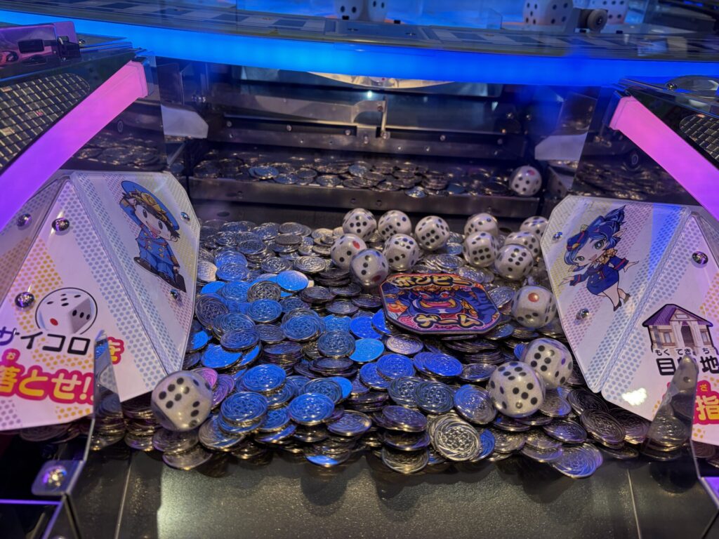 手前のエッジ(メダルの落下口)付近に、サイコロや「ボンビーゲーム」のパネルが溜まっている台を狙いましょう。
