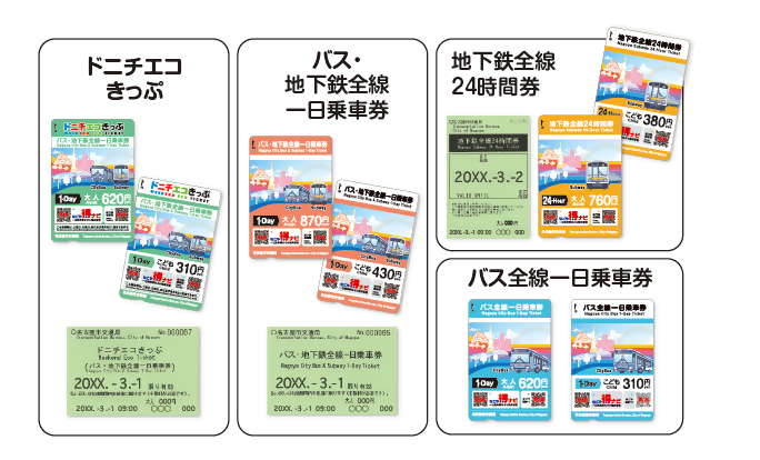 - 対象チケット: ドニチエコきっぷ/市バス・地下鉄1日乗車券/24時間券/メーグル1DAYチケット