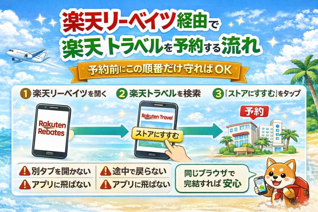 【2026年最新版】楽天リーベイツ経由で楽天トラベルを予約する方法|還元の仕組み・手順・注意点まとめ